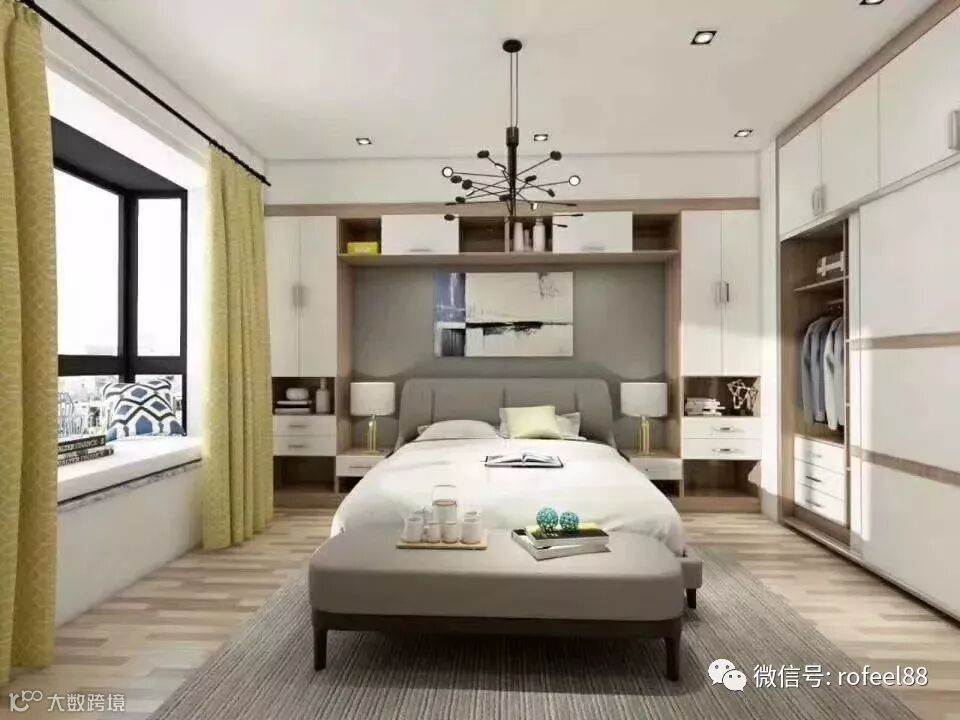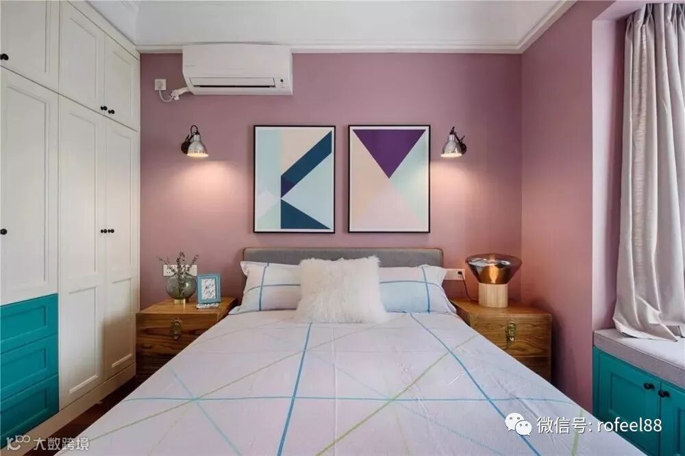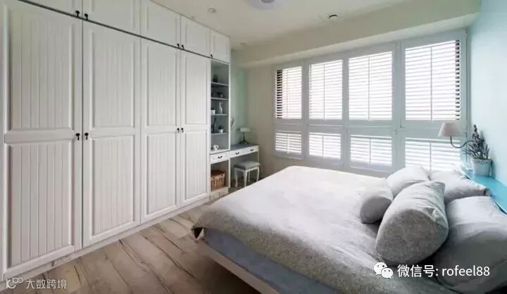 如果说卧室的衣柜只占到了墙面一半,剩余空间你会怎么利用?如果刚刚好又有一个窗户,这个时候果断选择设计一个书桌,大小很合适,采光更加好,岂不是物尽其用。