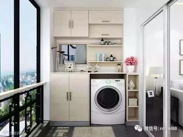 ▲为洗衣机量身定制的阳台柜,不仅给洗衣机一个完美的容身之所,还能容纳下所有的洗护用品、洗衣盆、脏衣篮,大大提升了洗衣效率。