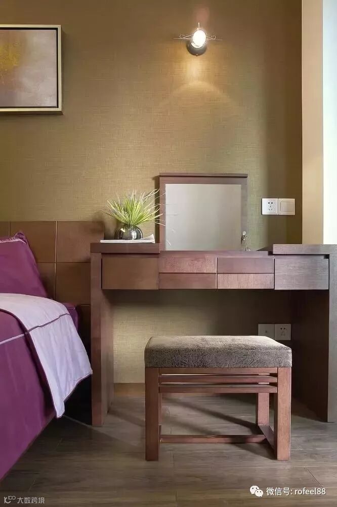 2、梳妆台不要与床相对,否则其上面的镜子正对着床,会使睡在床上的人情绪不安,做恶梦或精神欠佳。梳妆台最好与卧床的坐向平行一致,形成一种协调平衡的气场。