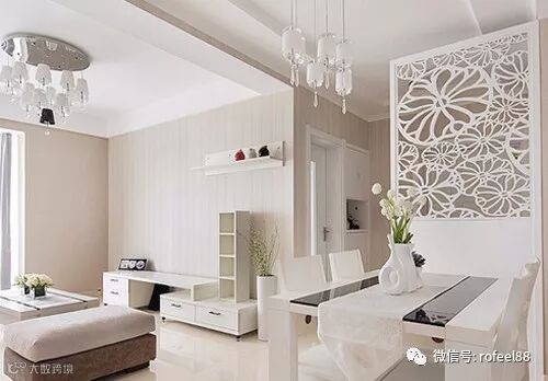 4、餐厅屏风摆放,不同的家庭有不同的空间使用需求,如果餐厅面积较大,可以把屏风当作分隔空间的手段。在以木质家具为主的空间里,选择栗色、淡黄色的屏风非常妥当。可以选择折叠式的屏风,它不仅可以将餐厨一分为二,又可以带来全然不同的印象,令餐厅空间完全改观。
