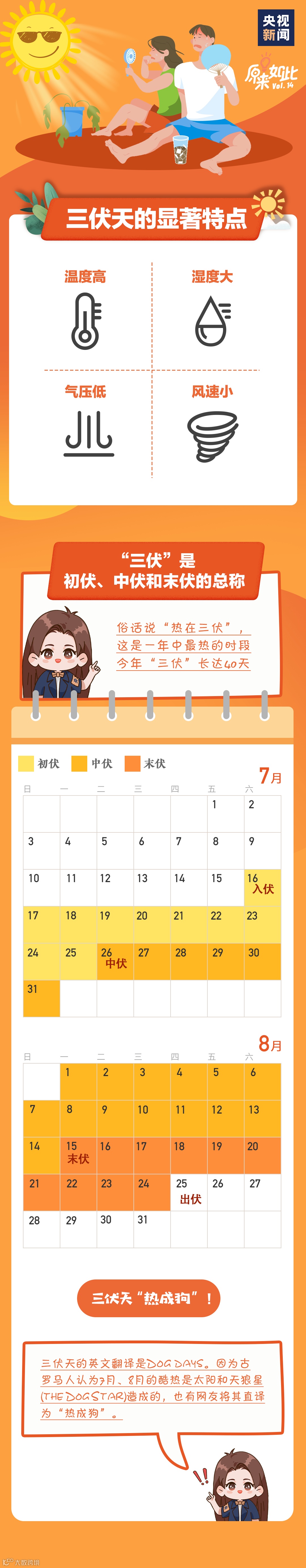 上,三伏每年会出现在7月中旬到8月中旬,通常情况下初伏和末伏固定为10天,而中伏不定,为10天或20天。因此,三伏有30天“普通版”和40天“加长版”两种。不巧的是,