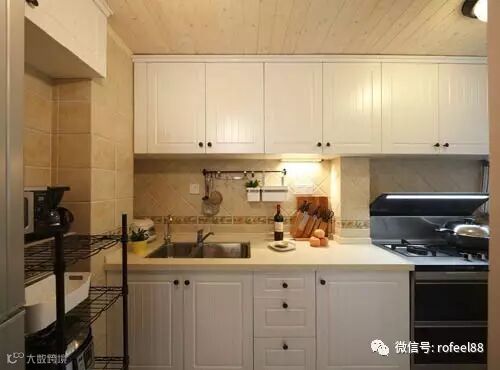 不少人埋怨厨房太小无法很好地利用,其实空间小不怕,合理地规划一样能打造出整洁又方便的厨房。墙地面装修上,小厨房建议采用单一明亮的材料,米白色的墙面砖配合浅咖啡色的防滑地砖,简单又显空间宽敞。