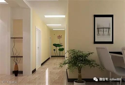 所以门厅过道应该保持光线充足。一般门厅过道的自然采光没有客厅、阳台充足,所以更多的需要照明的补充。灯饰照明最好是采用色调单一的灯具或者一两个吸顶灯照明,灯饰的颜色过多反而容易让人不安。