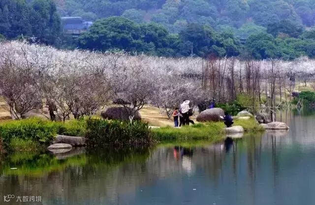 广州最有名的赏梅花去处在从化流溪湖,就是著名的流溪香雪。每年小寒前后梅花盛开,但开花较早,春节前就已经过了花期。