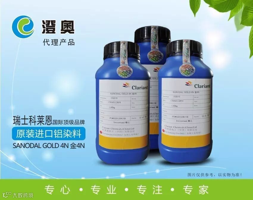 SANODAL GOLD 4N 金4N 是一种具有优异耐光、耐候、耐热性的均匀水溶性染料,室内室外均可适用。多年来广州澄奥与瑞士科莱恩紧密合作,所有产品都是从瑞士原装进口。