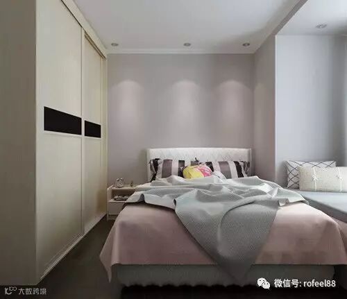 根据卧室狭长的特点,衣柜和大床摆放合适,简约的白枫移门衣柜,置顶设计更有效地利用空间,黑镜腰线点缀让素雅的衣柜增添了时尚优雅的格调。