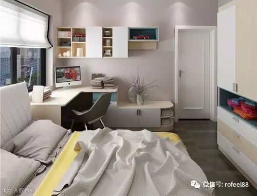 青少年房注重学习与休息一体化的空间设计,转角书桌在飘窗位更开阔和明亮,吊柜是很好的书柜,与书桌组合的榻榻米,学习累了可以休闲坐着看书,底下还设有收纳空间,户型设计安全贴心。