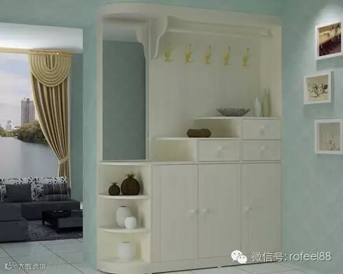 对于小户型来说,不可能有太宽的玄关,因此在玄关处放置一个收纳柜或者多层的架子,就可以很好地做一个空间划分。