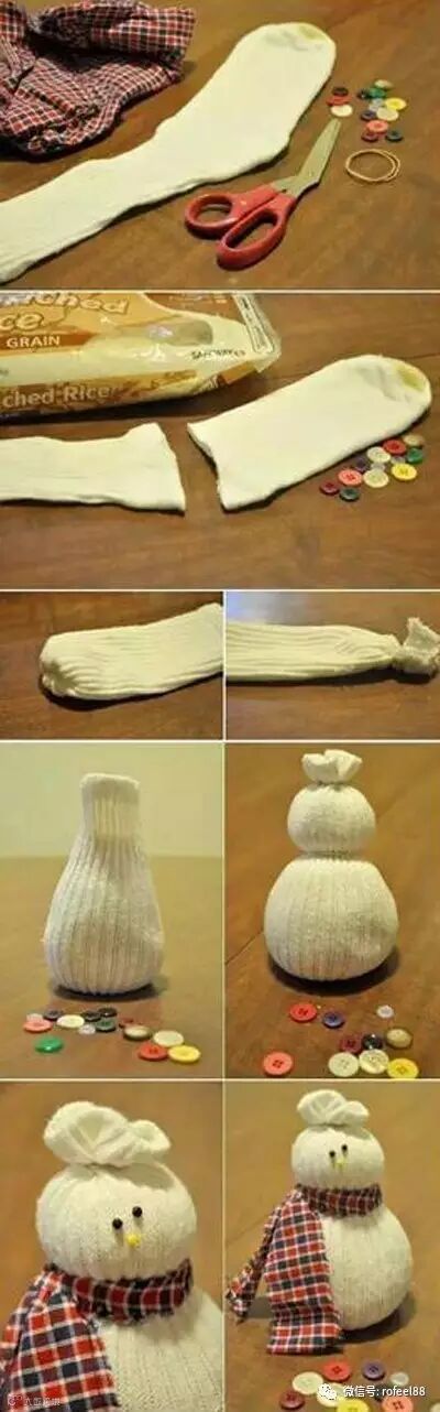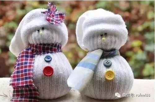 4、用布条做围巾,剩下的半截袜子做帽子戴头上