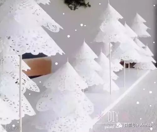 4、多做几个高矮不一的圣诞树,错落地插在泡沫板上