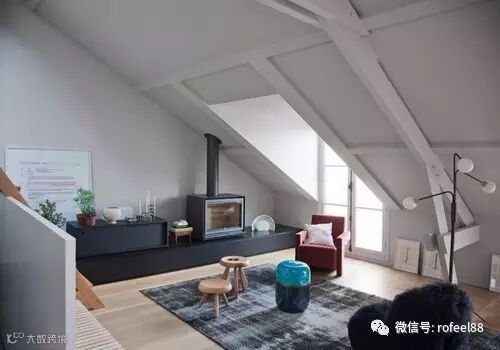 小巧的阁楼空间,由于屋顶的原因而变的不规则起来,厚重的墙面既充当了卧室背景墙的作用,好好粉饰一番是个不错的客厅哦。