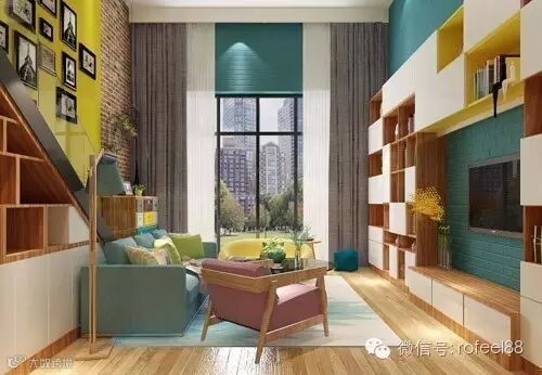 以白色和原木色为主色基调,柠檬黄和蓝色点亮了空间。电视柜“回字形”全包设计,满足了客厅的储物需求。沙发背靠楼梯,楼梯柜和储物柜,多功能的收纳规格,然我们的家居更加整洁、美观。