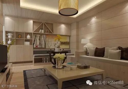 电视柜和沙发背景墙的吊柜设计,提供了充足的储物空间。浅色系装扮,更显的家居空间温馨而舒适。皮箱样式的茶几,可以储物,时尚的斑纹,为空间增添了一丝活力。