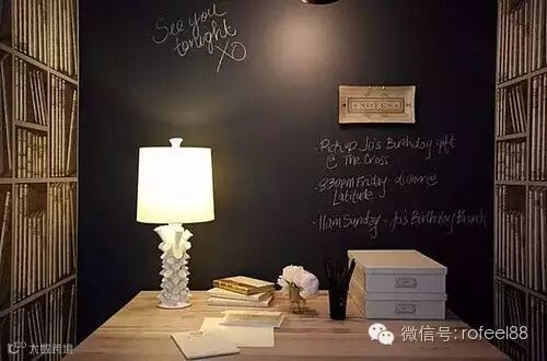 书房里弄一面黑板墙,工作或学习的时候可以记录相关疑问点和重点,既提高了工作和学习效率,又省去了笔和纸,是不是很绿色环保?