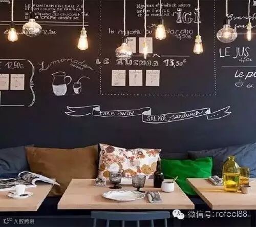 餐厅里有一面黑板墙,整个餐厅似乎变得洋气了,充满着文艺气息,好像是一间咖啡馆或西餐厅,让用餐者的心情都愉悦了起来。