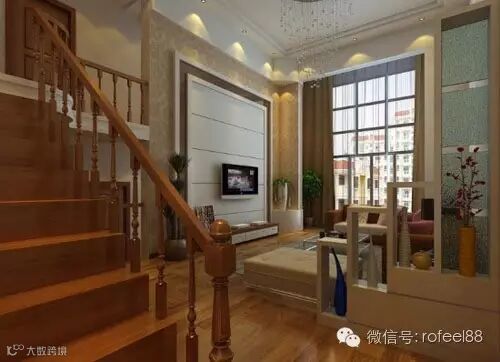 这样一款混搭式的设计风格里,把复式楼里装饰成两种完美的混合方式,客厅内的布置带着些欧式范效果,一些黄色物品的加入加上整体的霸气效果,让欧式范展现的非常完美,木质的楼梯木质的地板,是结合一种中式设计风格,让复式楼的装修更富有品位。