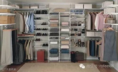 衣柜的立体空间能否合理利用,是衣柜收纳的关键所在。把衣物放进袋子,然后悬挂在衣柜的内部,可大大提高空间利用率。如果衣柜已经无法容纳如此多的衣物,也可以借助挂钩在柜体外面扩展收纳空间。