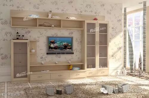 整体式统一色调电视柜,电视机居于中间位置,半开放式设计,不仅仅是收纳还是一道风景。