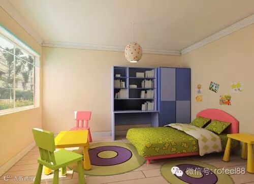 在比较年轻人士的居住空间中,使用鹅黄色搭配紫蓝色或嫩绿色是一种很好的配色方案。鹅黄色是一种清新、鲜嫩的颜色,代表的是新生命的喜悦,最适合家里有 小baby的居家色调。果绿色是让人内心感觉平静的色调,可以中和黄色的轻快感,让空间稳重下来。所以,这样的配色方法是十分适合年轻夫妻使用的方式。
