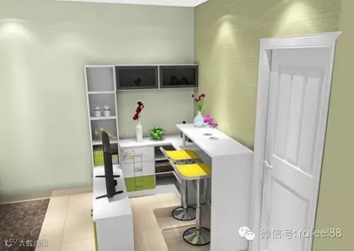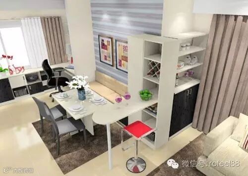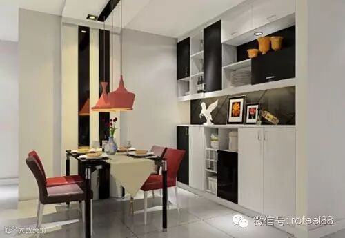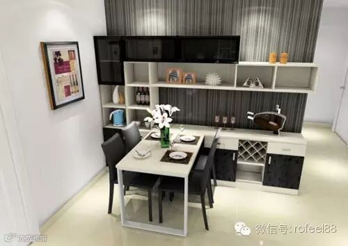餐桌与餐边柜结合固定在一起,增加了餐边柜的利用率,还省了不少空间。