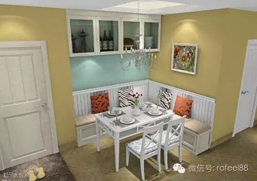 将餐边柜设计成矮柜的形式,将起到存储作用的同时还是当椅子使用,直接省去了几张餐椅的空间,那样就可以完美的解决餐桌占用面积大的问题了。