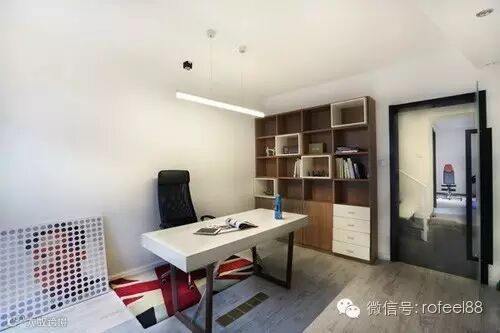室内都采用同一色调,墙面、地面、顶棚以及家具陈设乃至灯具器皿等均以简洁的造型、春节的质地,注重空间色彩以及形体变化的挖掘。采用这种风格设计的书房,大都极富时代性,令人耳目一新。