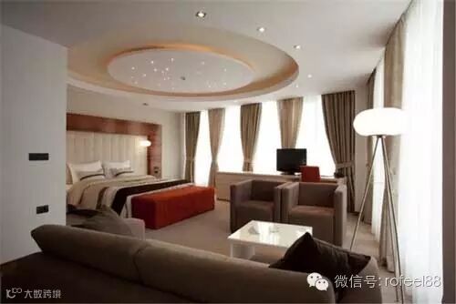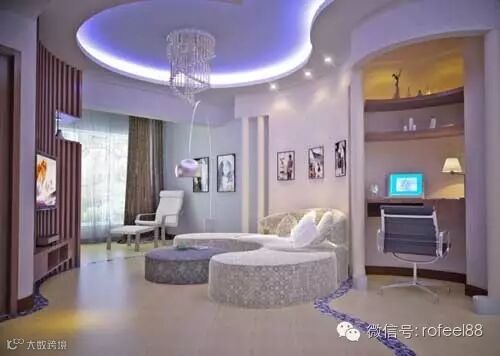(异形的吊顶通过光带形成空间纵深感,视觉上提高室内空间面积)