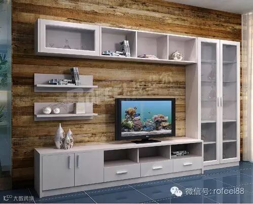 若隐若现的纹路或许容易被忽视,但它的优雅却不容忽视。统一色调的整体式电视柜,电视机居于中间位置,半开放式设计,既是收纳亦是风景。