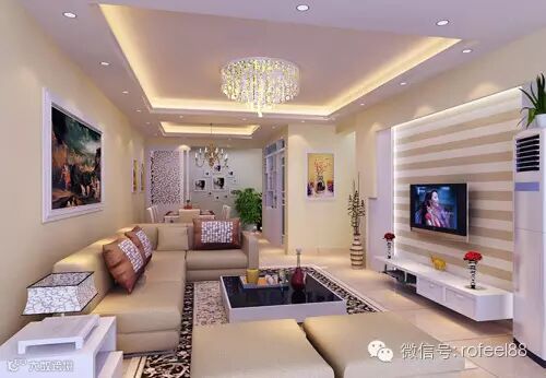 厅内应避免梁的阻障,可在其上该其结构装饰成各类美丽的造型。如传统式拱门,天花板的延伸、绘花等,也可干脆分成两个区域。