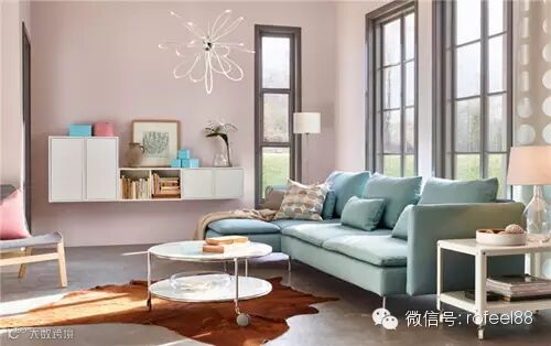 对粉色有着执着的偏爱,但又不想过于粉嫩,因此,便将客厅的墙壁涂成淡淡的粉色,清雅而不张扬。客厅的落地窗设计,使得阳光能够铺满整个客厅,淡青色的舒适沙发和暖粉色的墙壁让人有种如沐春风的感觉。线条飞舞的吊灯为淡雅的家里增添了一丝浪漫气息。