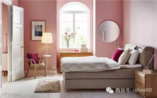侧卧是一个女孩房,粉色墙壁装点出一个女孩房间的娇嫩优雅,圆弧形的窗户颇有欧式的古典之美,造型简单的床却柔软度舒适,在唯美的房间里享受舒适的生活状态。