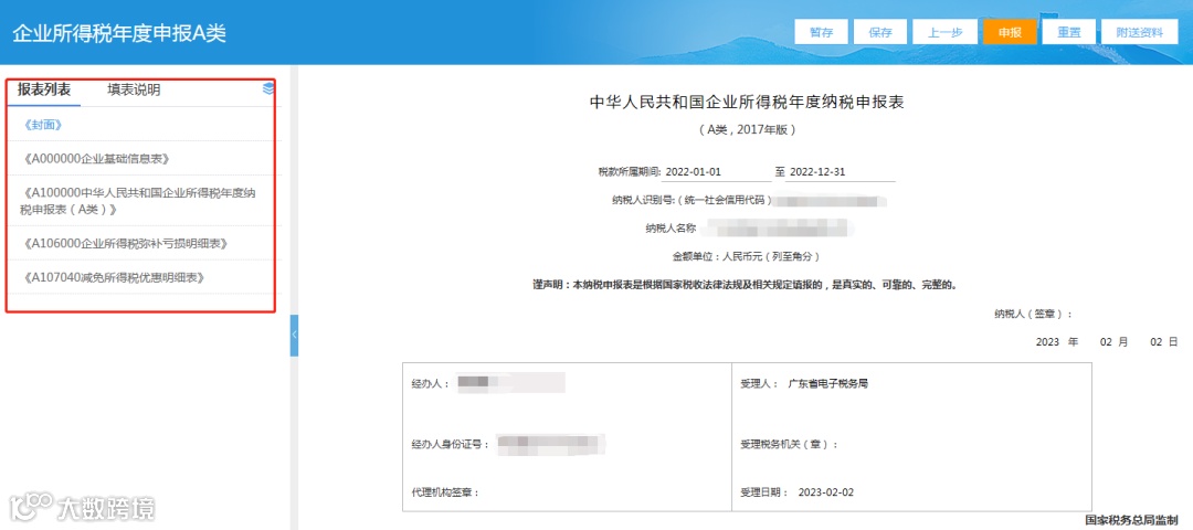 《中华人民共和国企业所得税年度纳税申报表(A类,2017年版)》及附表(国家税务总局公告2022年第27号修订版本)。