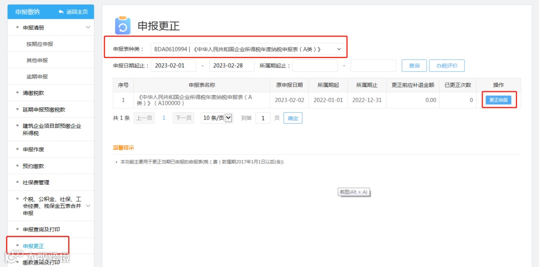 申报更正