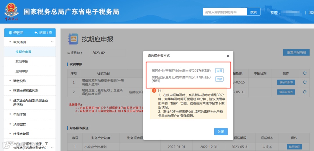查账征收纳税人登录广东省电子税务局(网址:https://etax.guangdong.chinatax.gov.cn/xxmh )