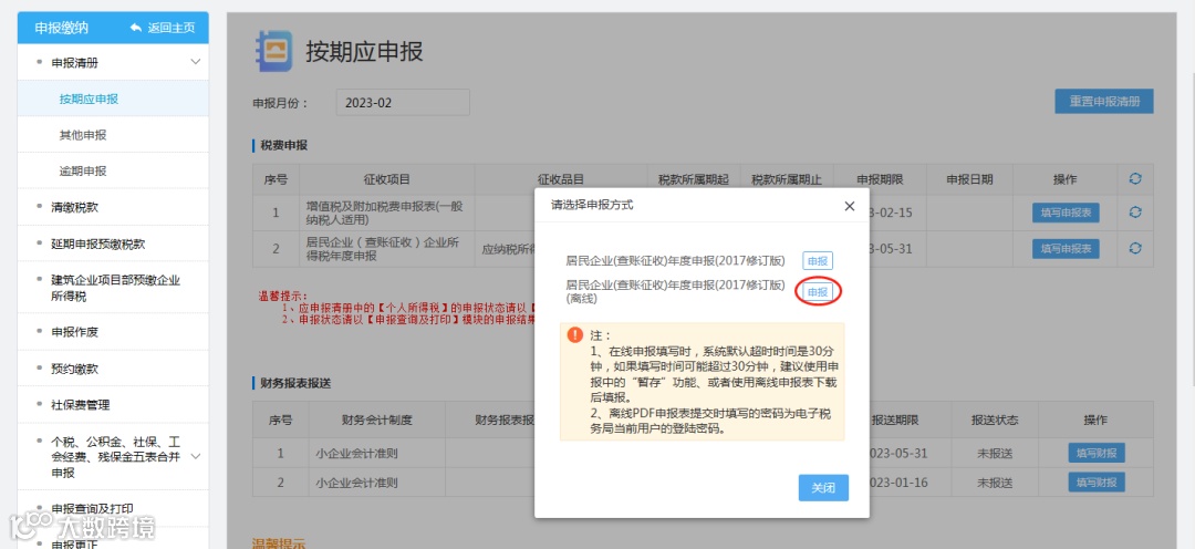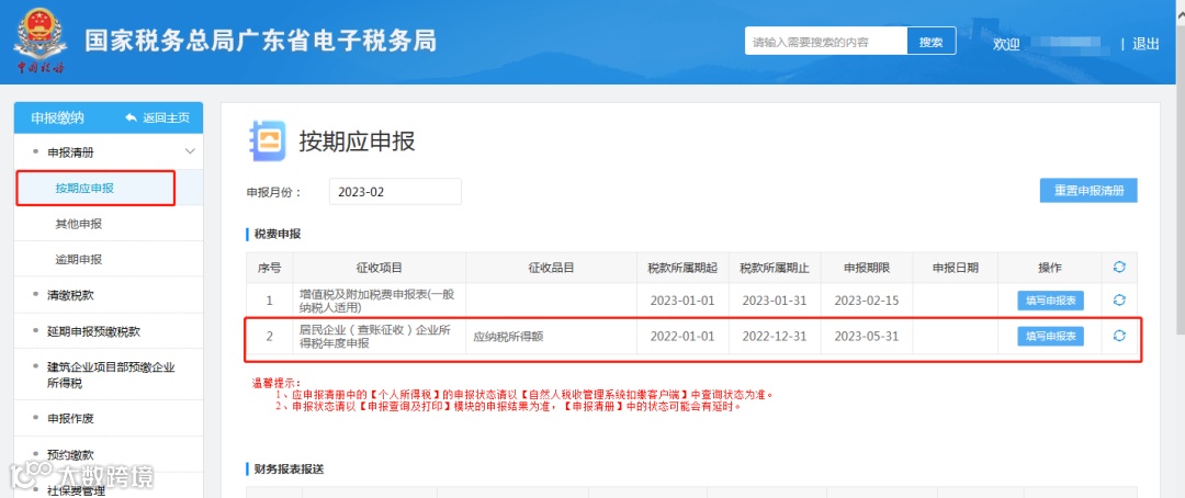 纳税申报提醒: