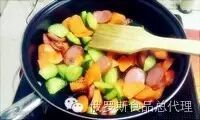 5.再加入胡萝卜片和黄瓜片,继续翻炒1-2分钟,加入适量盐和水,盖上锅盖,焖约2-3分钟。