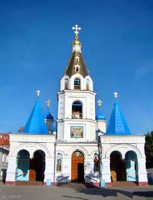 坐落在俄罗斯的伊尔库茨克市区,外观宏伟、华丽,教堂里金碧辉煌,壁上画了很多神人和圣人。