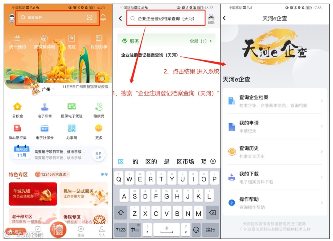 以往许多企业和群众常反映到窗口打印档案不方便,同时也有时间、地点、疫情等因素影响,希望可以在网上就能自助查询和下载企业档案!如今,响应广大企业和社会各界人士的期待,“天河e企查”系统上线啦!