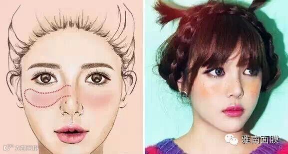 HOW:在鼻梁和两颊间连上一条长长的倒海鸥形,两颊的颜色可以稍加重