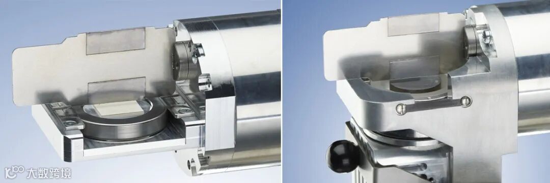▲图1. D6 PHASER固定样品台(左)用于Bragg2D衍射,旋转样品台(右)用于Bragg2D和Phi-1D二维衍射。