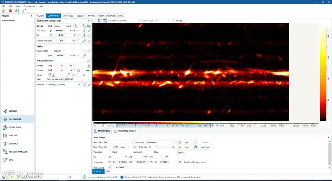 ▲图2. DIFFRAC.COMMANDER界面展示粗糖样品的Phi-1D扫描。