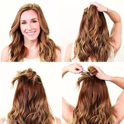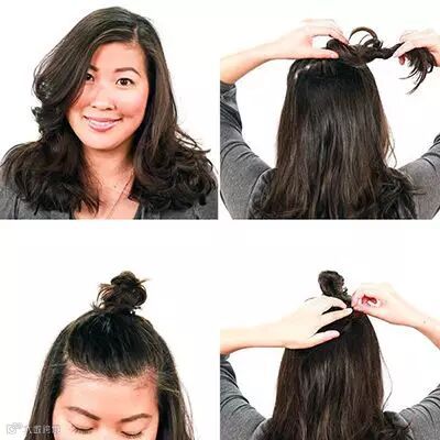 睡姿过于凌乱的结果就是第二天起床后头发乱到不忍直视,碰巧你又快要迟到了,哪能顶着乱糟糟的头发出门!这个时候只需要简单把下摆头发理好,头顶最乱的部分用丸子头搞定,这样既时髦又不会让人觉得你出门太仓促。