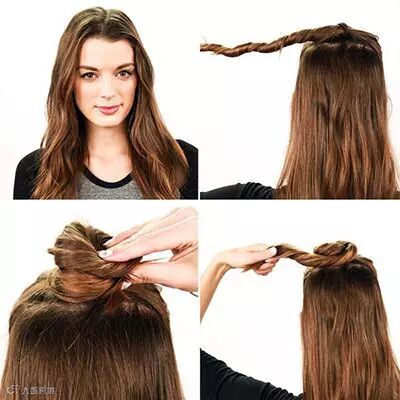将顶端的头发按照一个方向扭转,接下来就像面包圈一样一圈圈的盘旋。