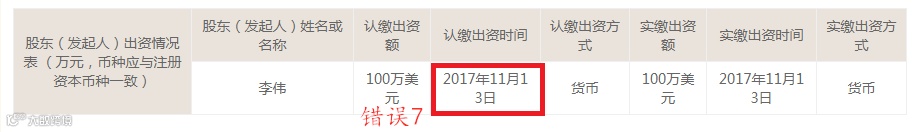 把公司认缴日期填写成了成立日期。