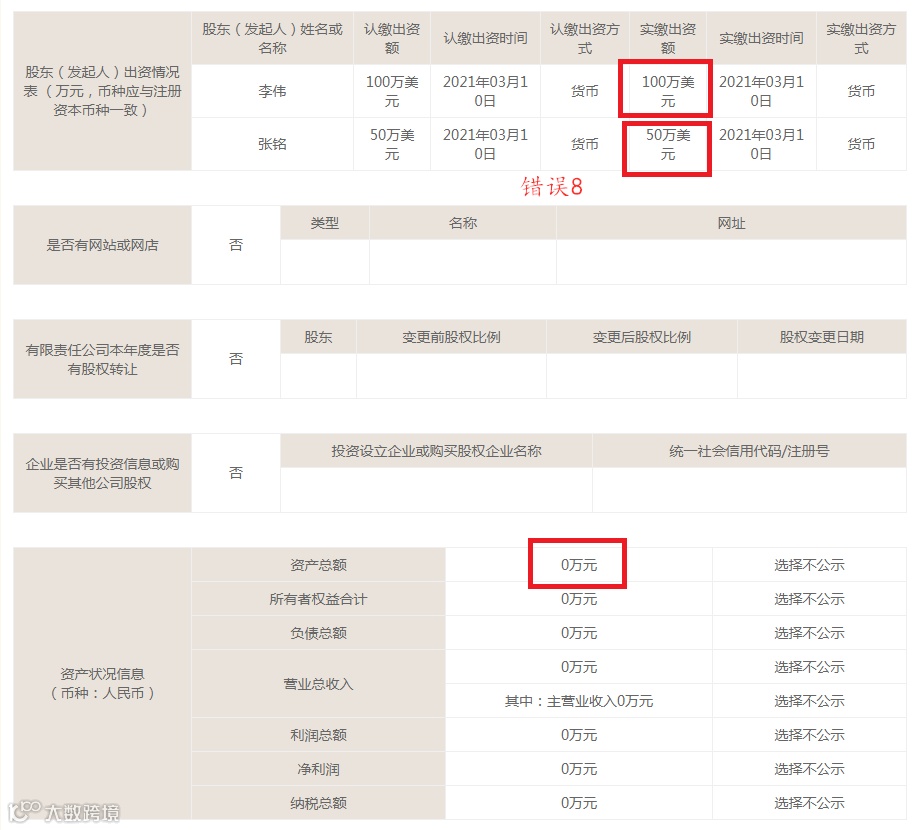 特别提醒:对外投资、对外担保属于核心信息,必须要谨慎勾选,如实申报。
