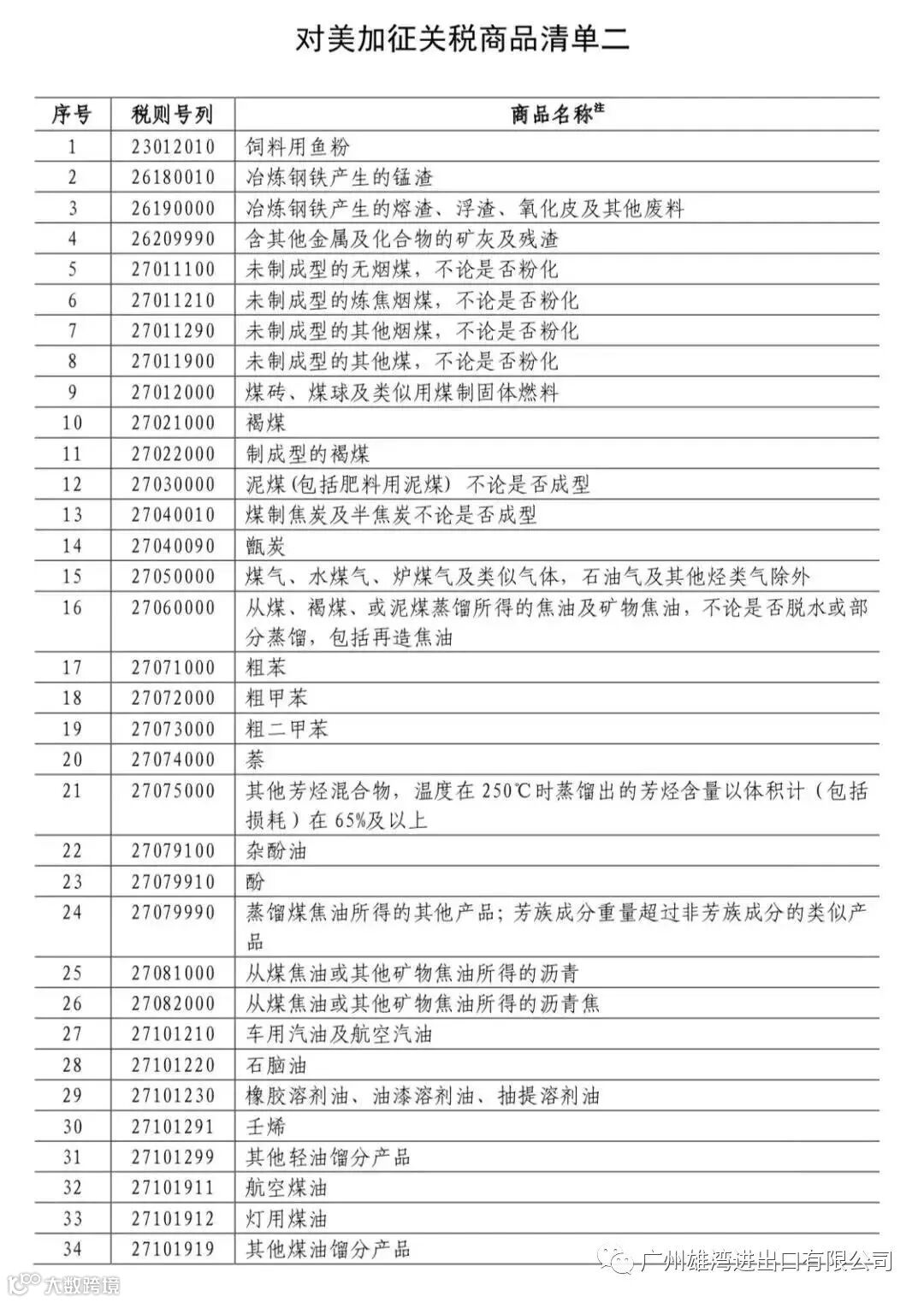 根据征税清单,中对美征税的商品包括了褐煤、柴油、润滑油、石油沥青、大型客车、轿车、越野车等333个税目。值得注意的是,清单的第148项—325项,均为各类车及车类用品,占了整个清单的一半以上。