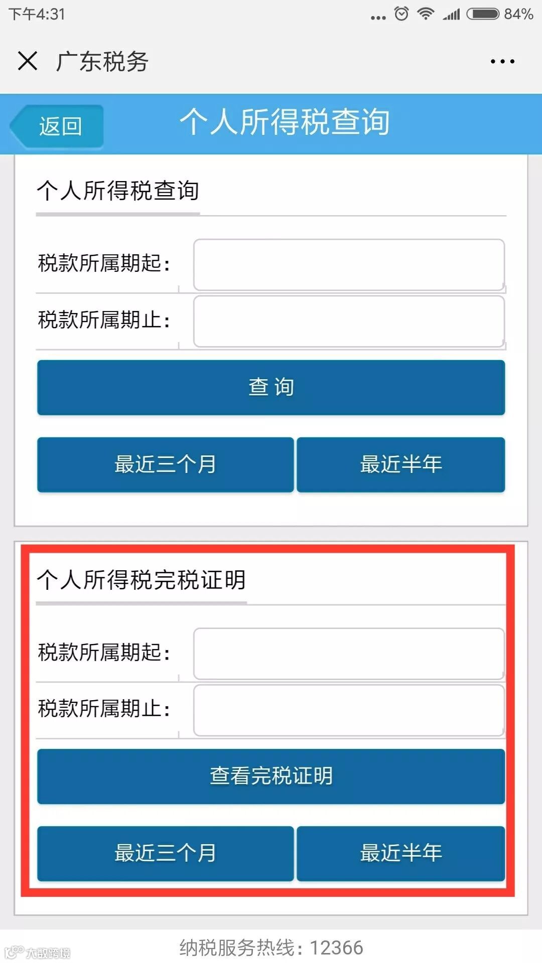 点击【个人所得税查询】,跳转进入个人所得税查询界面;