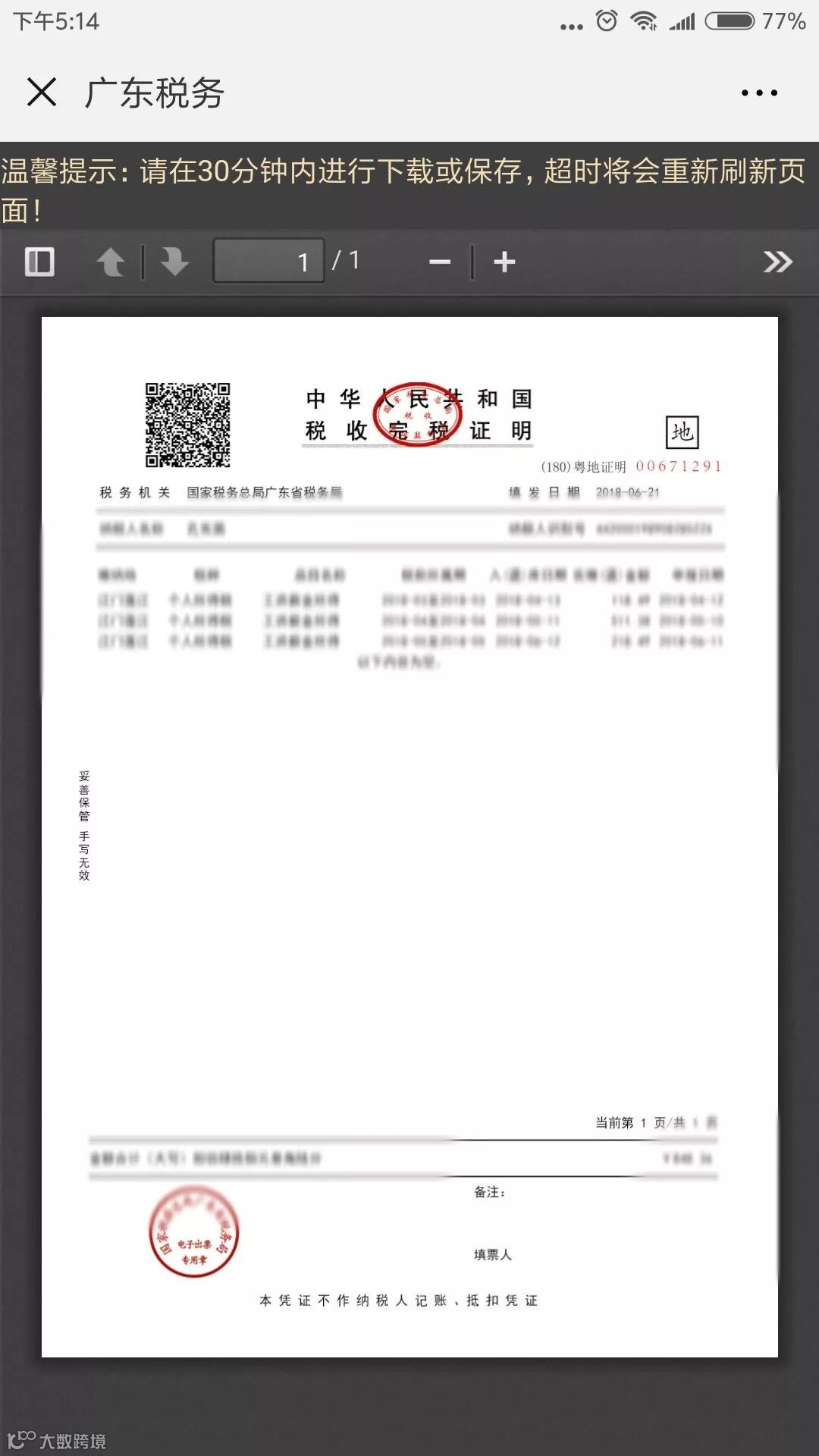 点击【开具电子税票】按钮,进入电子税票PDF界面。