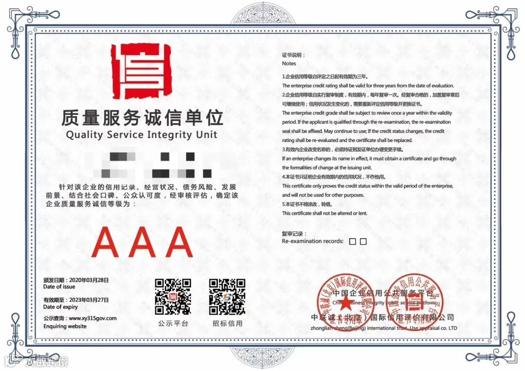在企业交往中,一张“AAA级企业信用等级证书”便是企业本身最好的凭证。