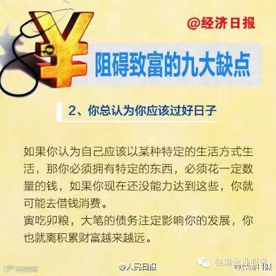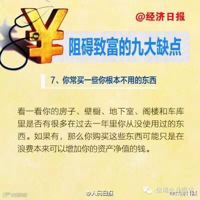 很多人认为他们富不起来是因为自己挣的钱太少。事实上,致富与你能挣多少钱之间没有太大的关系。你为什么富不起来?以下九个缺点,可能是你在发财致富的过程中最常出现的↓↓↓